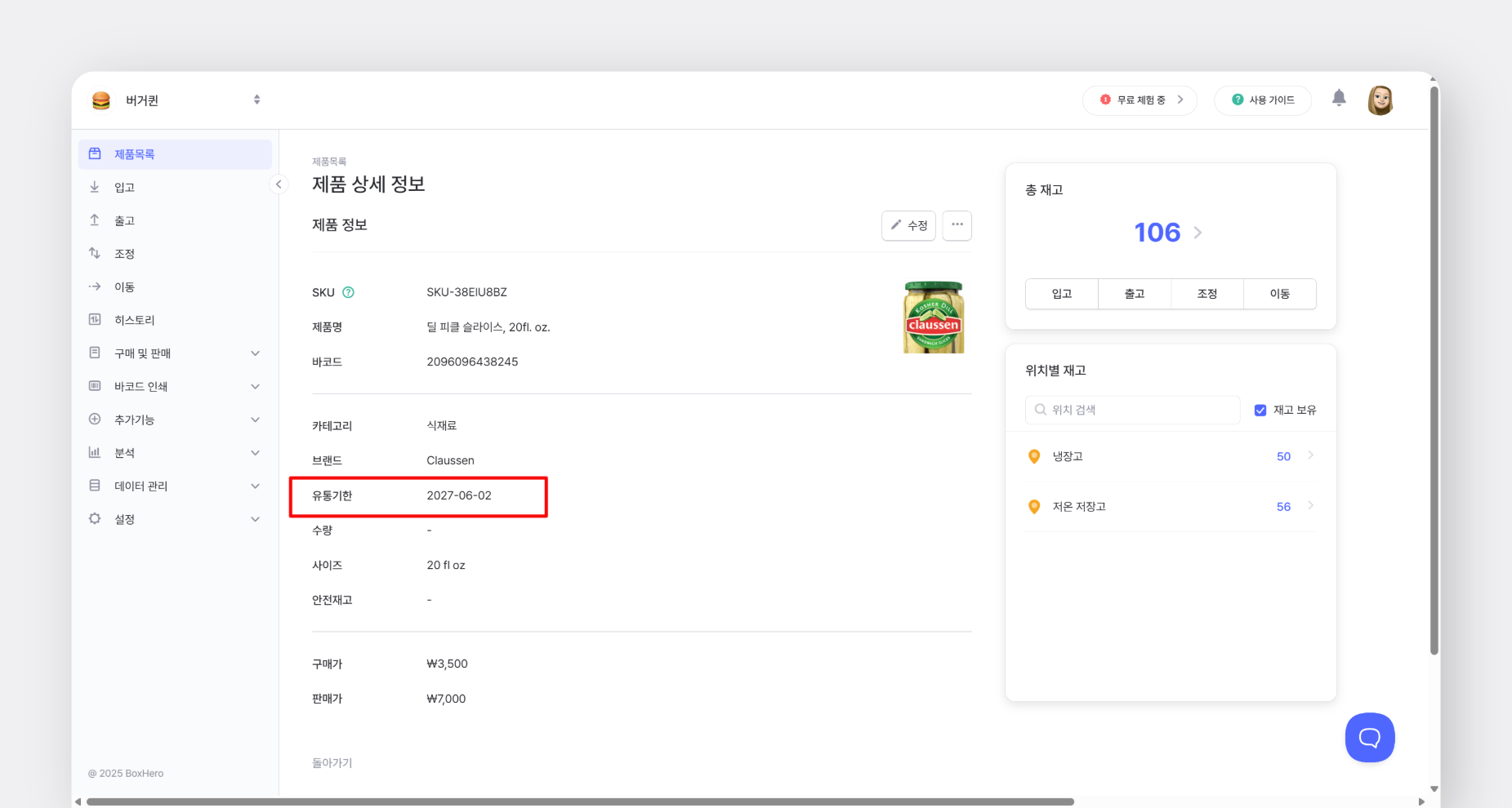 유통기한을 관리할 수 있나요?